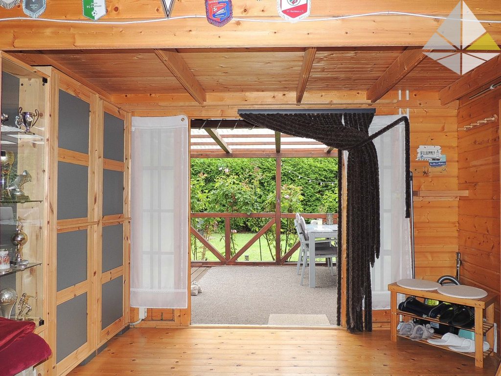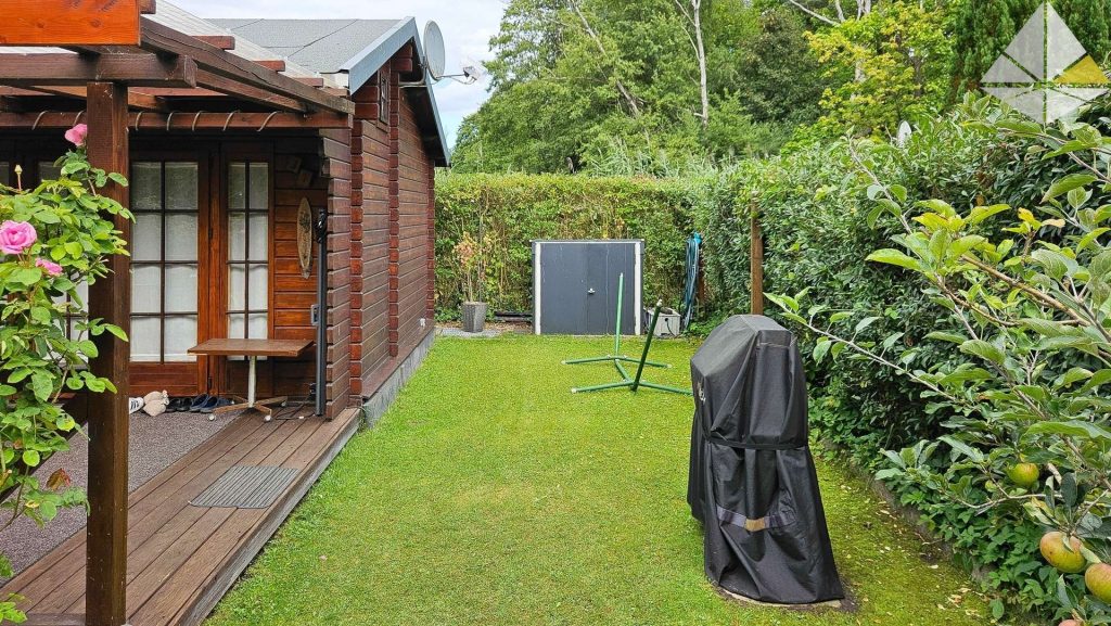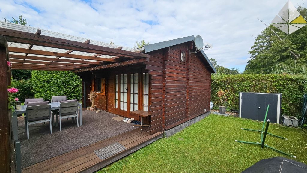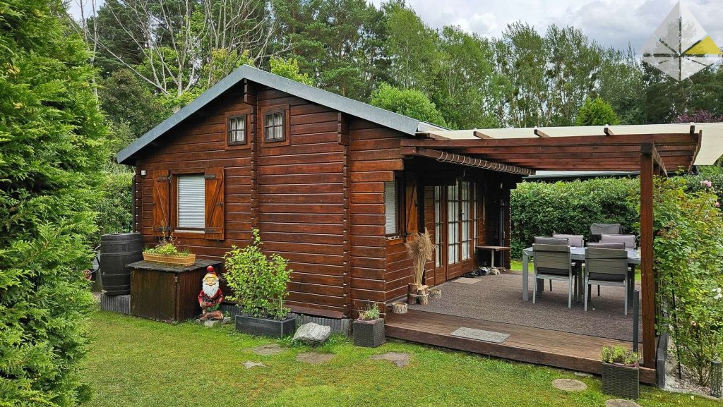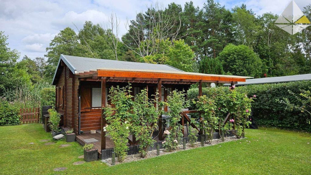 Heute können wir Ihnen ein Kleinod am Eberswalder Stadtrand anbieten. In einer ruhig gelegenen Wochenendhaussiedlung finden Sie dieses charmante Objekt. Besonders interessant ist die direkte Lage an einem kleinen Bade- und Angelsee. Nur 10 m entfernt können Sie sich morgens das Handtuch über die Schulter werfen und ein erfrischendes Bad nehmen. Nur die Eigentümer der Siedlung haben hier Zugang. In der bildlichen Darstellung sehen Sie den Steg! Auf dem Grundstück wurde im Jahr 1996 das Häuschen in "Blockbohlenbauweise" errichtet. Die Wohnfläche beträgt ca. 28 m². Davor liegt die überdachte Terrasse mit ca. 19 m². Der Belag besteht aus Lärchendielen. Das Haus unterteilt sich in den Wohnraum, die Küche und das Duschbad. Zwei Schlafböden runden die Ausstattung ab. Platz für bis zu 4 Personen! Die Ausstattung können Sie in der Galerie betrachten. Auf dem Grundstück stehen Ihnen Abstellhäuser (Blechhäuser) für die Gartengeräte, Fahrräder etc. zur Verfügung. Auf einer Loungeecke können Sie sich entspannen. Das gesamte Objekt befindet sich in einem Topzustand. Es besteht kein Instandhaltungsrückstau. Im Gegenteil, alles wurde stets gewartet, gestrichen und bei Bedarf sofort repariert. Das Grundstück ist an das Stadtwasser angeschlossen. Die Abwassergrube (Schwanenhals an der Grundstücksgrenze) wird regelmäßig nach Bedarf geleert. Die Anlage ist aus abrechnungstechnischen Gründen in einem Verein organisiert, dem Sie beitreten müssen. Keine Bange - es gibt hier keine Auflagen wie in Gartensiedlungen. Mitverkauft wird ein Seeanteil an einem ca. 50 m entfernten See. Weitere Informationen erhalten Sie bei einer Besichtigung. Gern können Sie einen Besichtigungstermin vereinbaren. Wichtig zu wissen - es handelt sich um ein Erholungsgrundstück - Dauerwohnrecht nicht möglich! Auch eine Finanzierung des Kaufpreises wird bei vielen Banken abgelehnt.