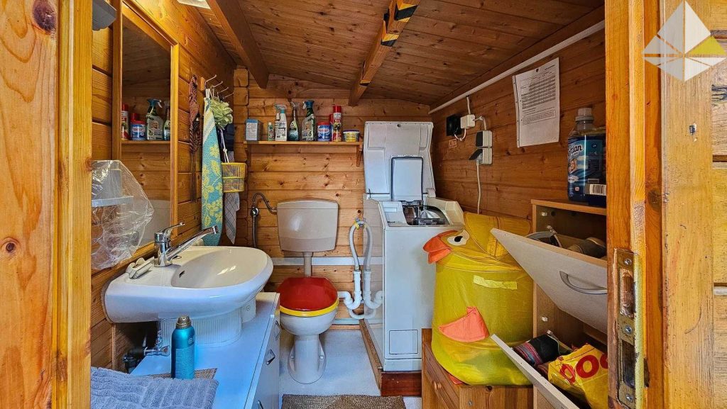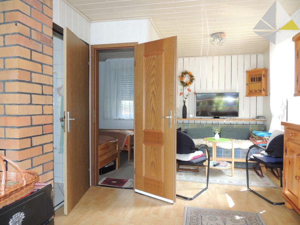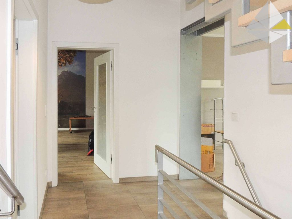 Zur Aufteilung des Hauses: Sie betreten das Haus über einen kleinen Flur, welcher als Garderobe genutzt wird. Hier befindet sich auch das kleine Duschbad. Im Anschluss gelangen Sie in einen großen, sehr gut belichteten Raum, welcher als Esszimmer genutzt werden kann. Hier haben Sie einen schönen Ausblick auf Ihr Grundstück. Bisher diente er als Besprechungsraum. Das Wohnzimmer und die Küche runden die Ausstattung im Erdgeschoss ab. Über die neue Treppe gelangen Sie ins Obergeschoss. Hier befinden sich ein Schlafzimmer, das Hauptbad mit Dusche und zwei Zimmer, welche auch gewerblich genutzt wurden. Diese können sehr gut als Kinderzimmer genutzt werden. Eine Grundrissanpassung ist ohne großen Aufwand möglich.