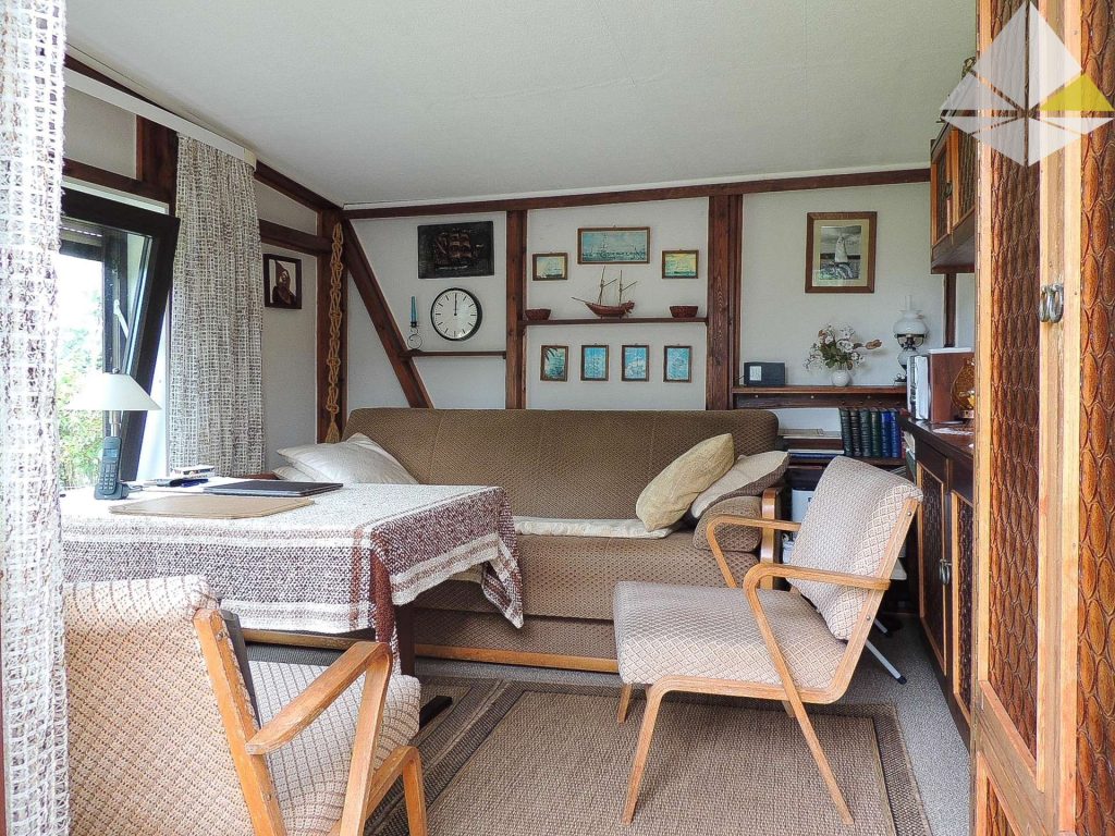 Das Haus unterteilt sich in den Flur, das Wohnzimmer, ein Schlafzimmer und die Küche. Im Dachgeschoss wurde eine kleine Kammer als Schlafzimmer eingerichtet. Am Haus liegen zwei Terrassen. Von der rückseitigen Terrasse haben Sie einen phantastischen Blick zum Werbellinsee.